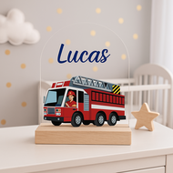 Het Nachtlampje Brandweerwagen met Ladder is een opvallend en stoer nachtlampje voor kinderen die gek zijn op brandweerwagens. Het heldere ontwerp toont een klassieke brandweerwagen met ladder, bedrukt op plexiglas met een naam naar keuze. Zo wordt het lampje een persoonlijk en functioneel cadeau.